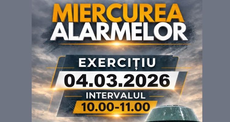 ”In contextul organizarii „Saptamanii Protectiei Civile” in Romania, in perioada 26 februarie 2026 - 4 martie 2026, va informam ca Inspectoratul pentru Situatii de Urgenta “Dealul Spirii” Bucuresti-Ilfov va desfasura la nivelul minicipiului Bucuresti si a judetului Ilfov, in data de 04.03.2026 in intervalul orar 10:00 – 11:00, antrenamentul/exercitiul de alarmare publica denumit generic „Miercurea alarmelor”, pentru verificarea functionarii sirenelor, prin actionarea acestora.