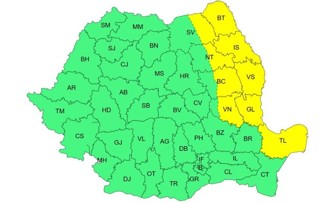 Meteorologii au emis o atentionare cod galben de vant, valabila vineri, in intervalul 8.00 - 20.00, in Moldova si nordul Dobrogei.